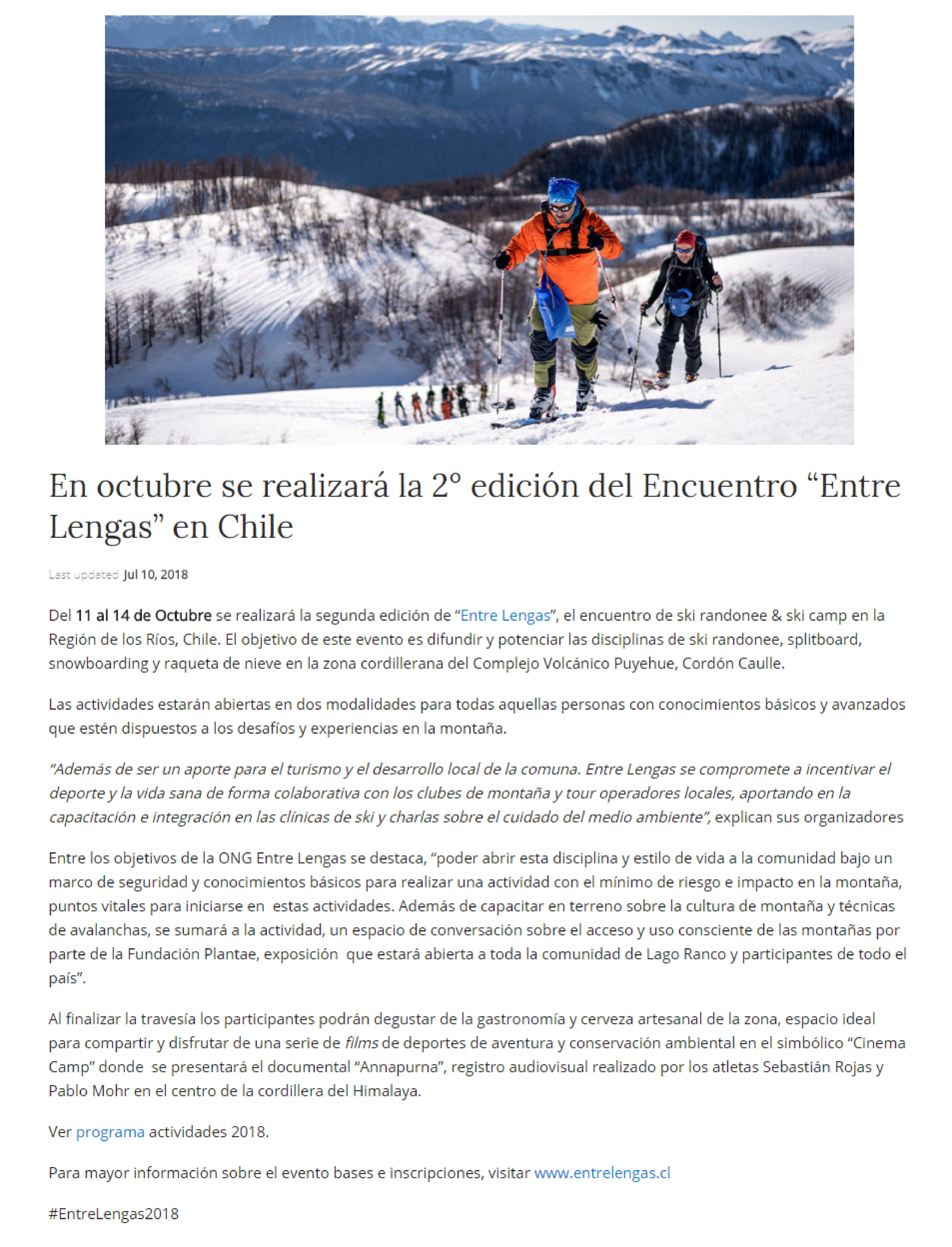 En octubre se realizará la 2° edición del Encuentro “Entre Lengas” en Chile – Revista Aire Noticia Completa aquí! adminvaldivia2018-07-16T04:28:02+00:00 Comparte esta publicación! Elige tu plataforma FacebookX Related Posts Gallery Chile país de Montaña Noviembre 25th, 2021 | 0 Comments Gallery Recorriendo Rupanco por sus aguas que corren Octubre 14th, 2021 | 0 Comments Gallery Los encantos de la Provincia del Ranco Mayo 3rd, 2021 | 0 Comments Gallery Entrevista a Erwin Martinez – Nube Cowork Febrero 7th, 2021 | 0 Comments Gallery Cuando el acceso a la naturaleza se vuelve un privilegio Febrero 7th, 2021 | 0 Comments