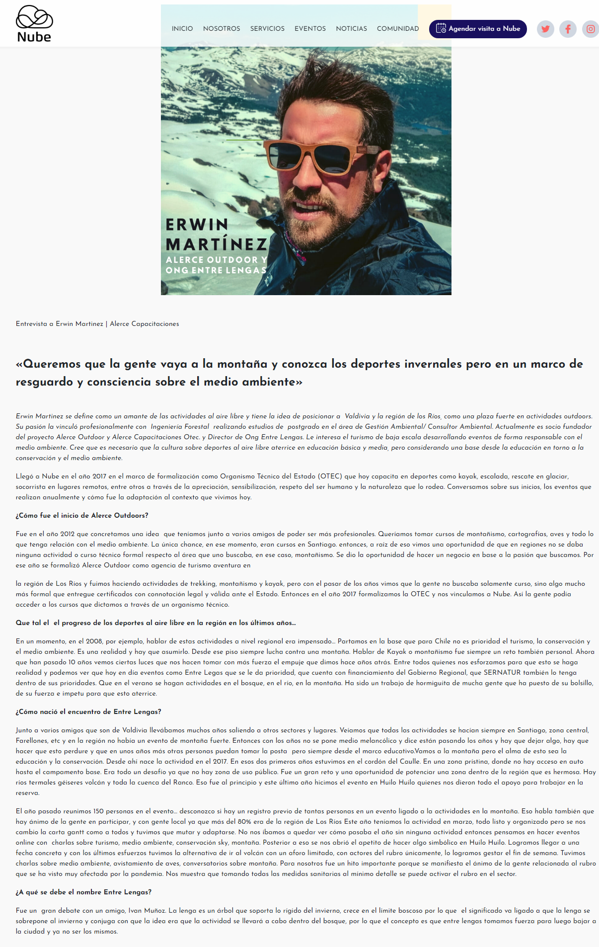 View Larger Image Entrevista a Erwin Martinez – Nube Cowork Link original aquí adminvaldivia2021-02-07T15:09:01+00:00 Comparte esta publicación! Elige tu plataforma FacebookX Related Posts Gallery Chile país de Montaña Noviembre 25th, 2021 | 0 Comments Gallery Recorriendo Rupanco por sus aguas que corren Octubre 14th, 2021 | 0 Comments Gallery Los encantos de la Provincia del Ranco Mayo 3rd, 2021 | 0 Comments Gallery Cuando el acceso a la naturaleza se vuelve un privilegio Febrero 7th, 2021 | 0 Comments Gallery Conversatorio busca poner en valor el patrimonio natural de la Región de Los Ríos Febrero 7th, 2021 | 0 Comments